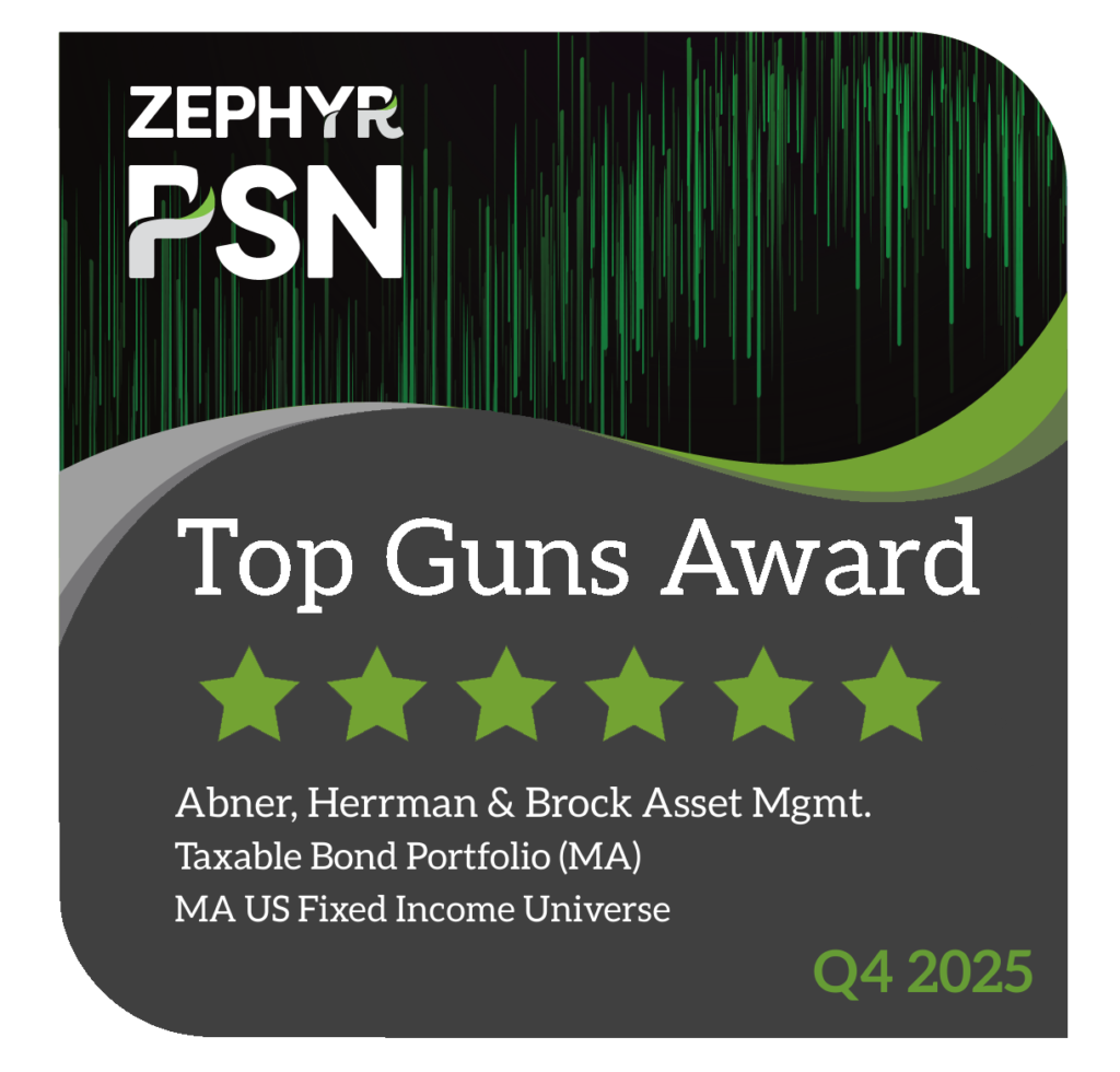 Abner, Herrman & Brock’s Investment-Grade Taxable Bond Separately Managed Account (SMA) has been awarded a Top Guns designation and 6 star rating by Informa Investment Solutions’ PSN manager database, North America’s longest running database of investment managers…